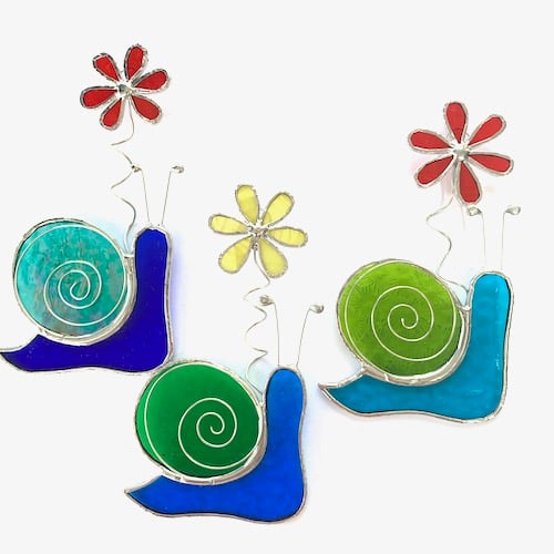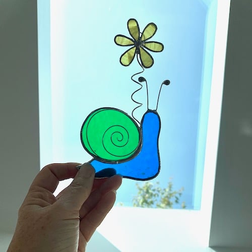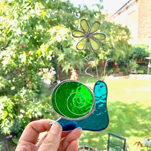This fun little snail is plant friendly and won’t munch your plants, infact he carries it's own little flower around with him.
