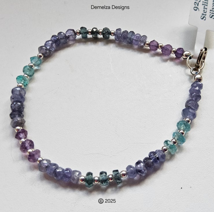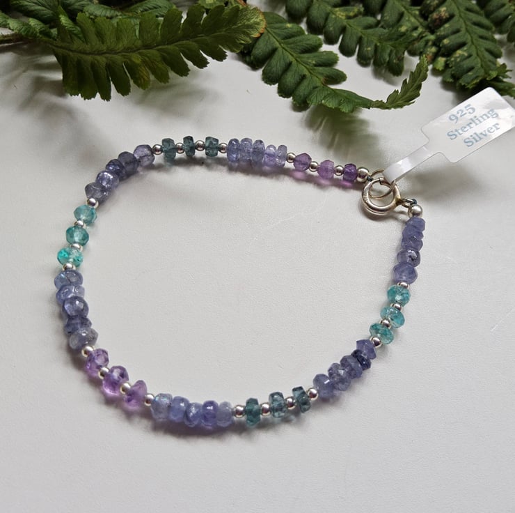 Tanzanite, Amethyst , Apatite & Kyanite Sterling Silver Bracelet (SMALL)