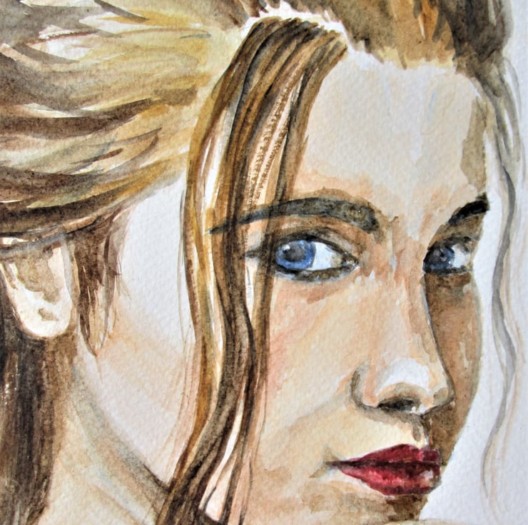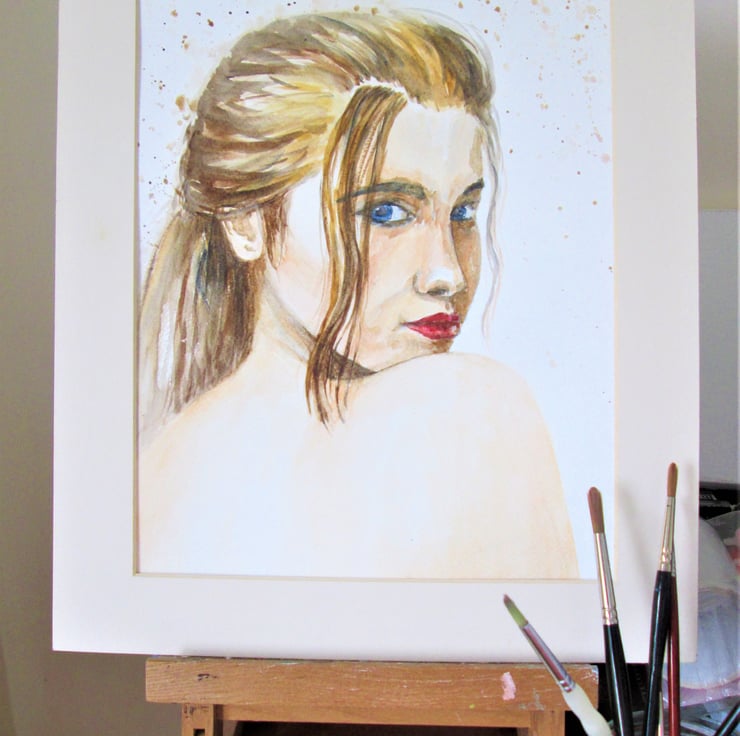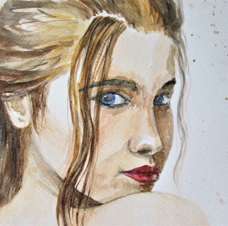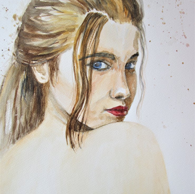 An expressive acrylic painting of a woman looking over her shoulder at you. This sexy woman has a coi expression.