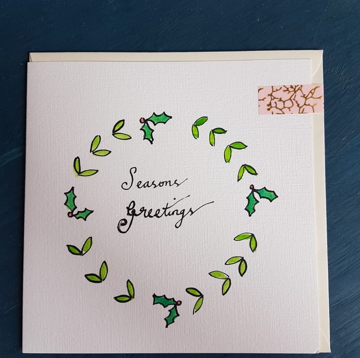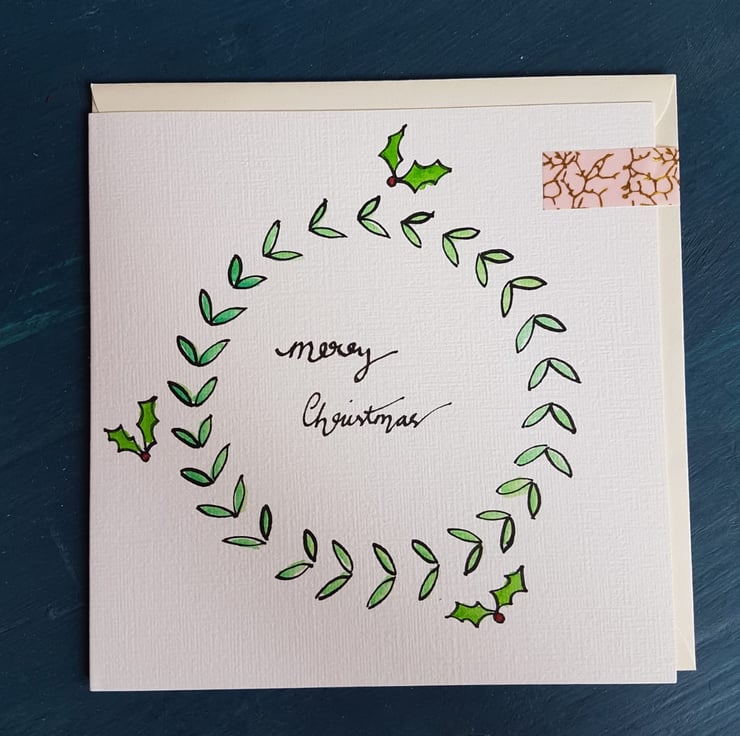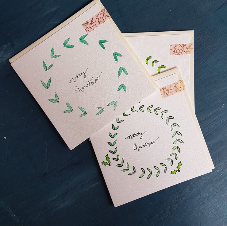 Selection of 3 hand drawn Christmas Cards. Drawn using ink, watercolour and pencil on ivory or Kraft card.