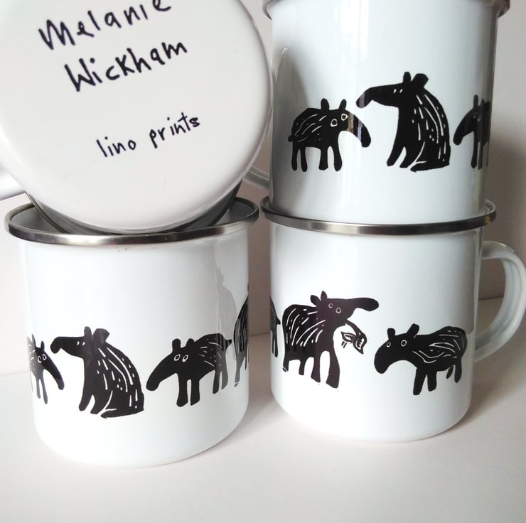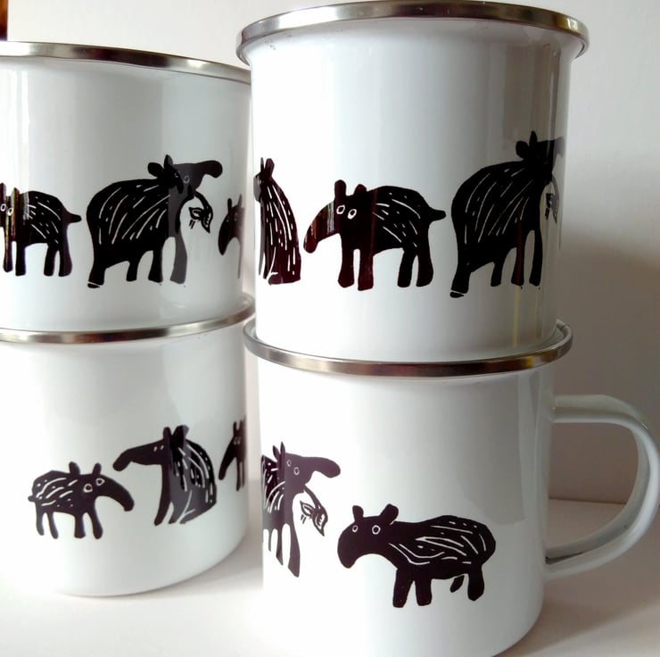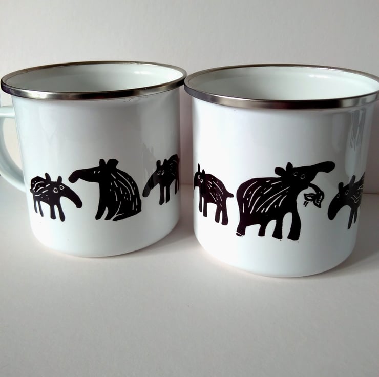 The image is taken from my original tapir lino cut print which has then been transfered onto the enamel mug.