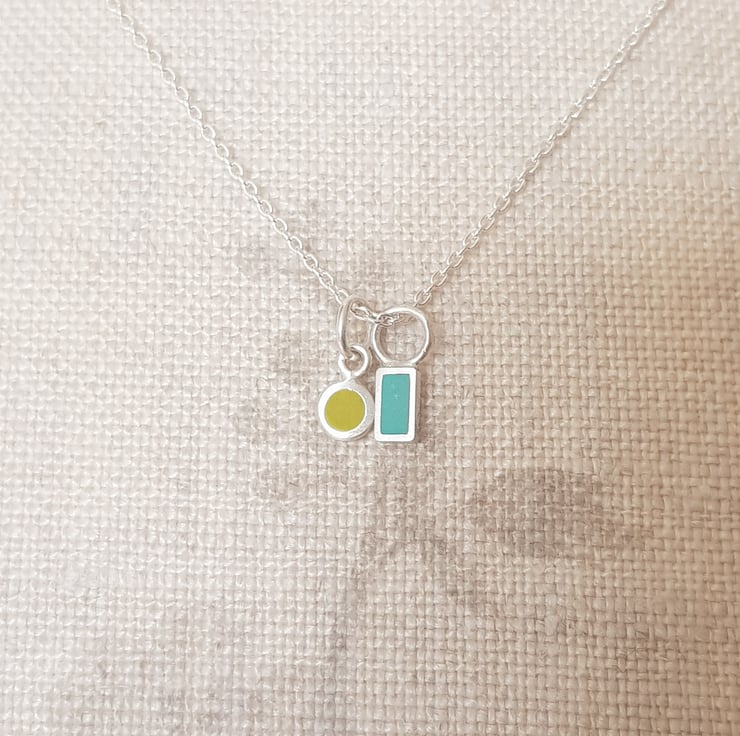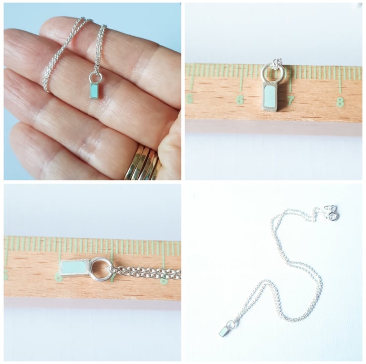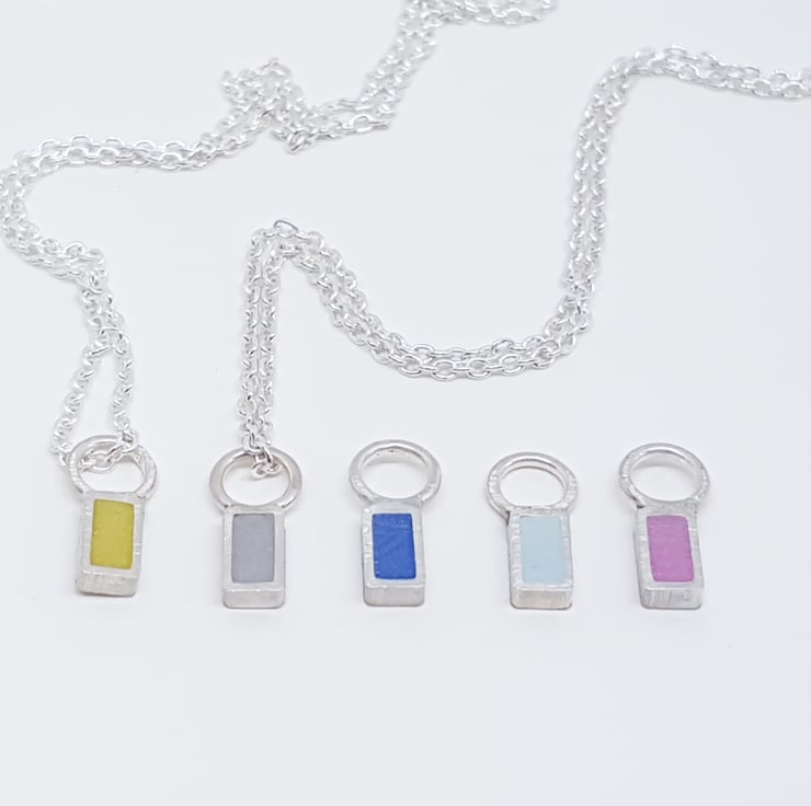 Choose from either a miniature circle or rectangle pendant filled with a choice of lovely custom coloured resin clay. The little pendant is coloured on both sides (same colour).