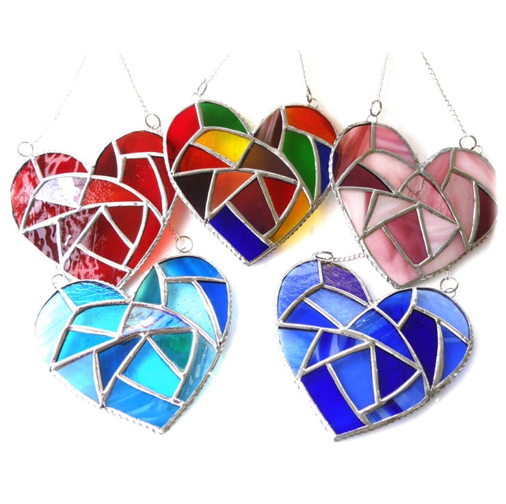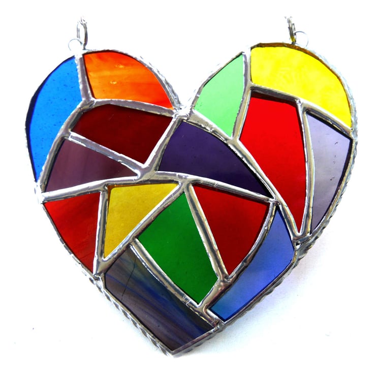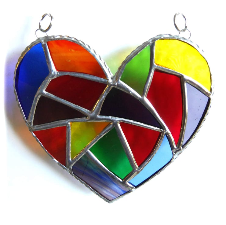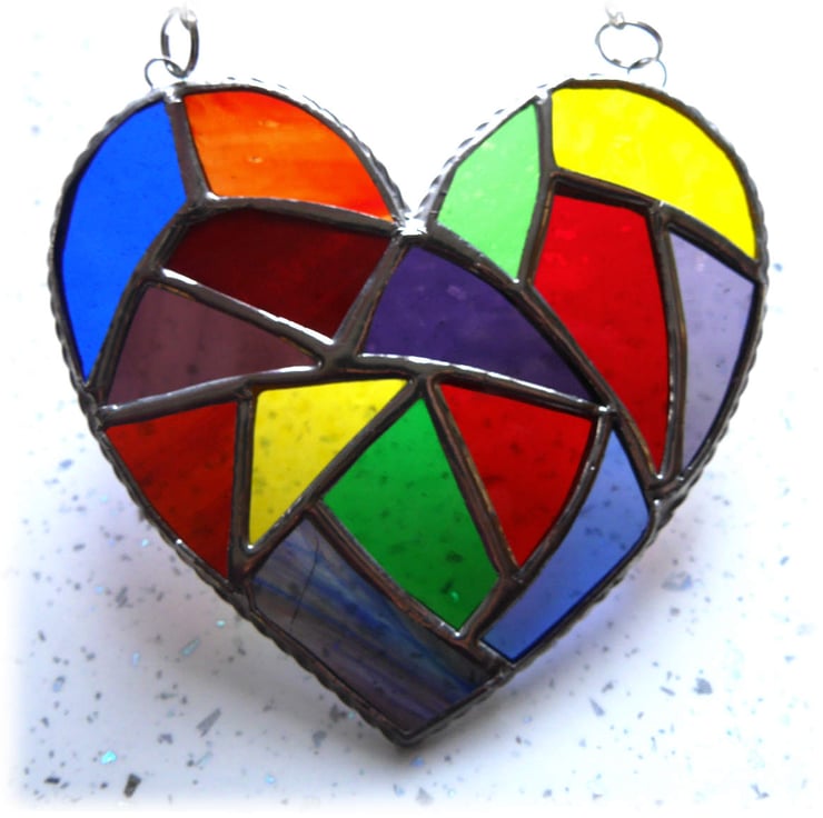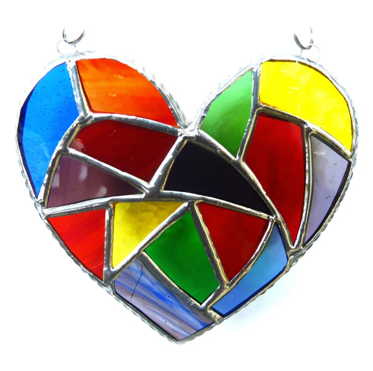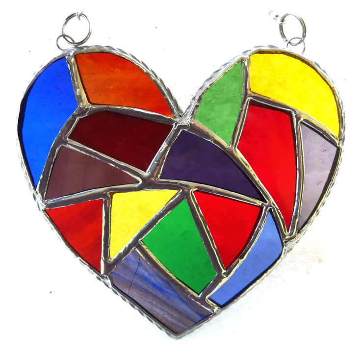 This is a stained glass suncatcher made using the Tiffany copper foil technique.