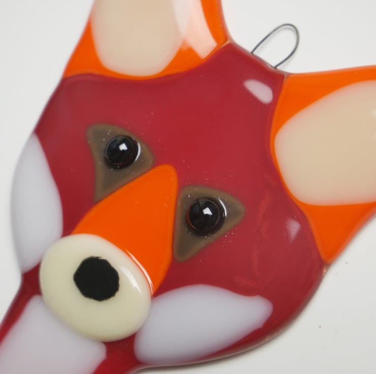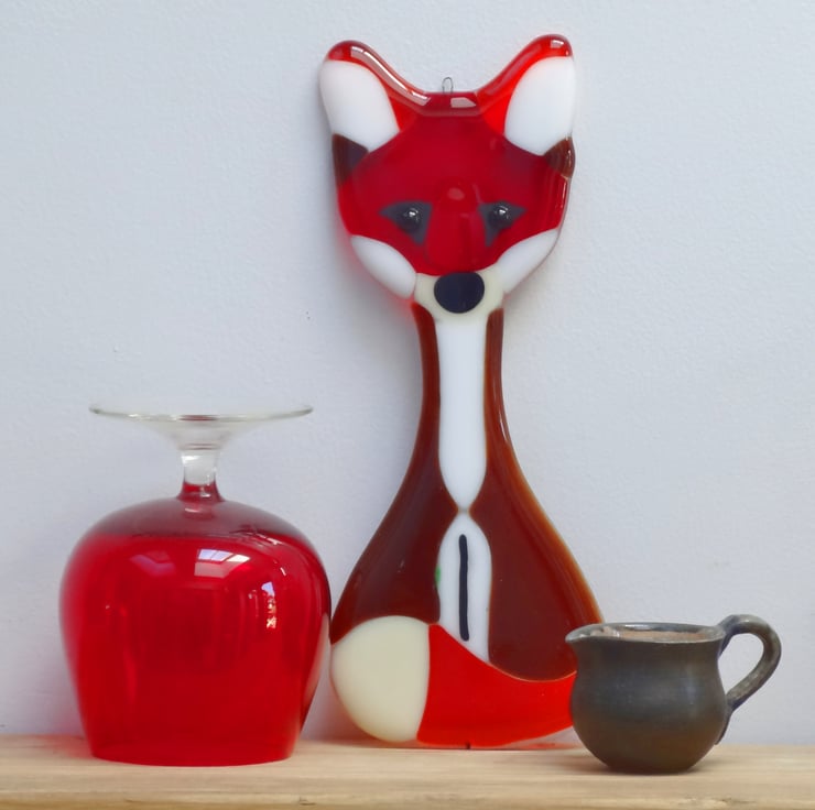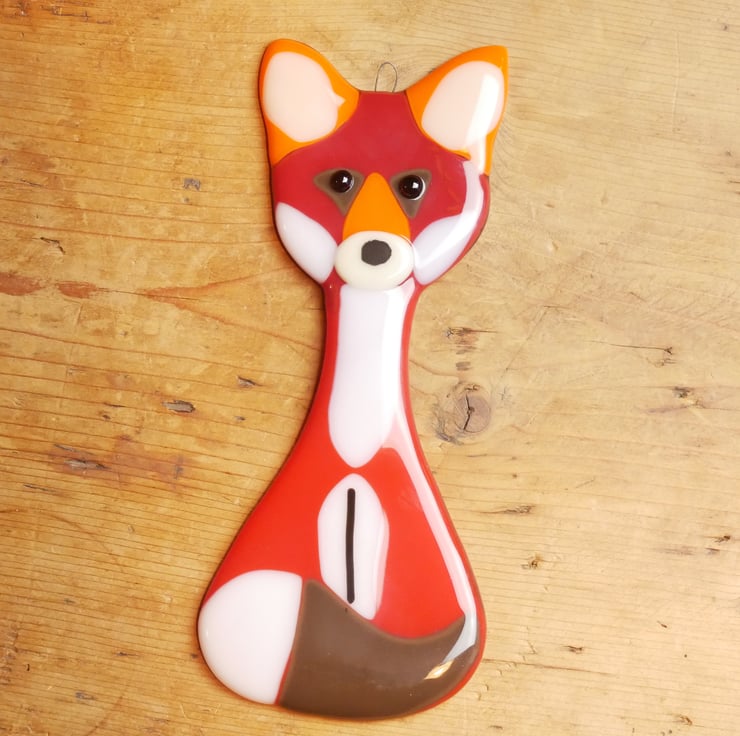 These fused glass fox decorations can be used as a wall hanging decoration or Suncatcher and are suitable for any indoor or outdoor space. Each is approximately 20cm tall and made from transparent brown, red and / or orange glass, with an opaque white belly, nose and cheeks.