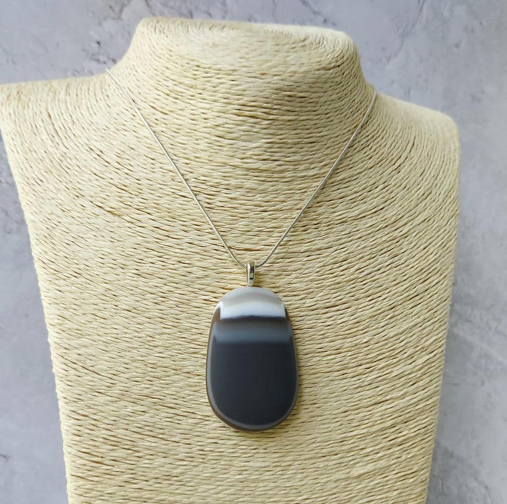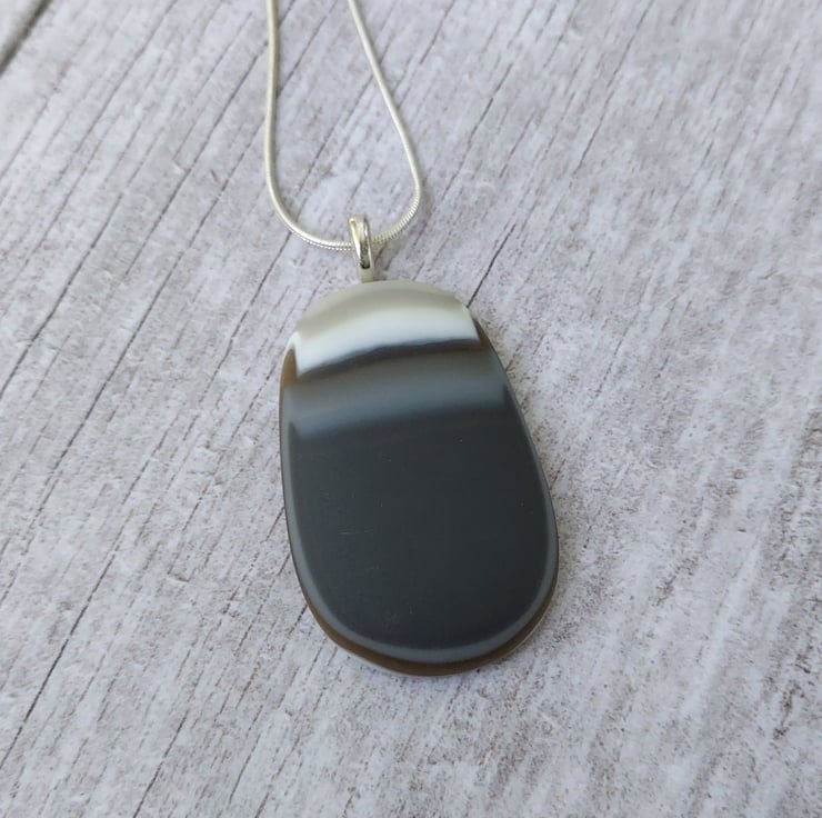 This classic grey fused glass pendant really does look and feel like a sea-smoothed pebble - the perfect accessory for lovers of the natural world. This is quite a large pendant - a real statement - and the satin finish glass is incredibly tactile, great for someone who likes to fiddle with their jewellery!