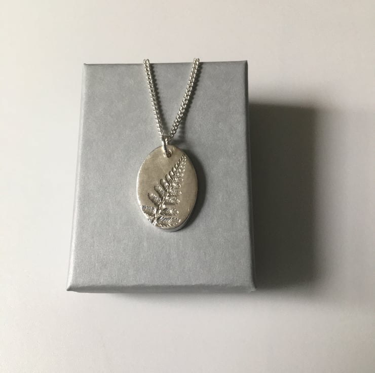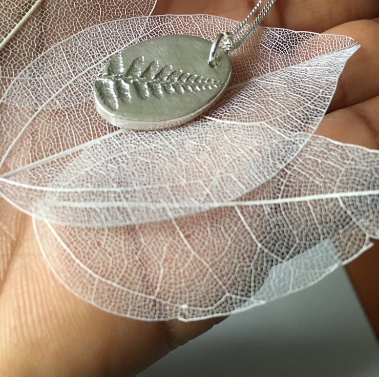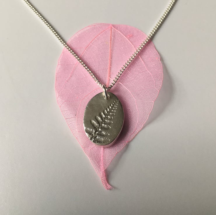 Silver Art clay pendant imprinted with a Fern leaf from my garden.