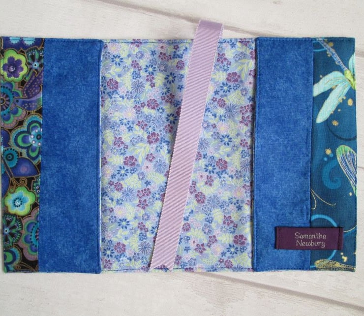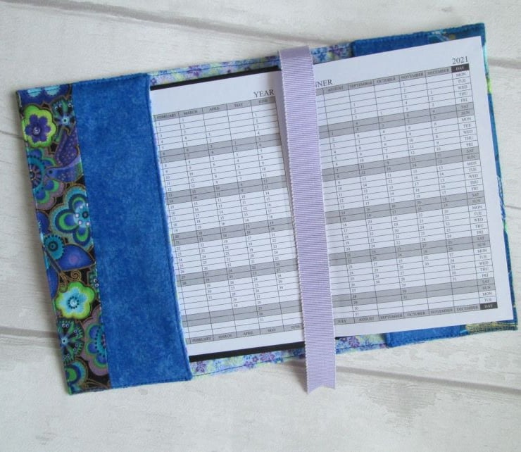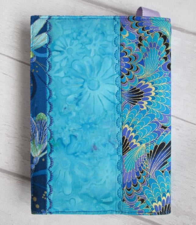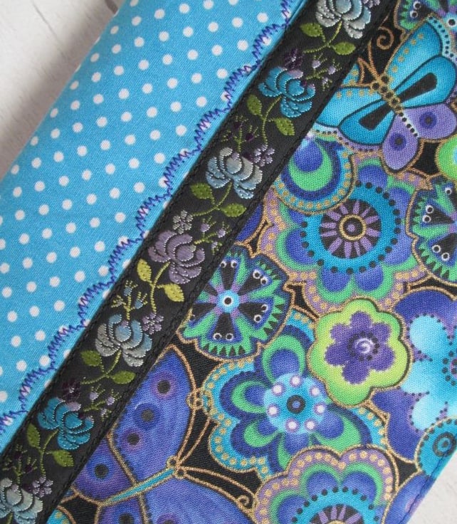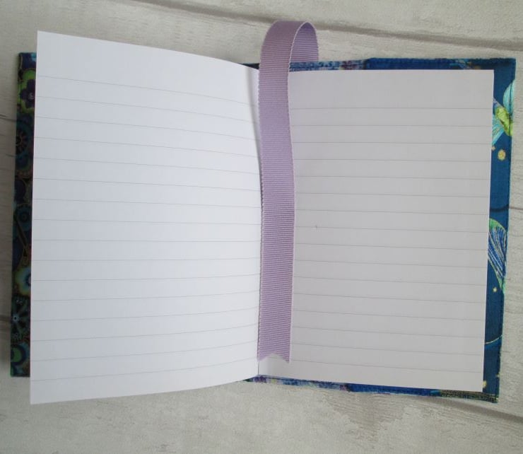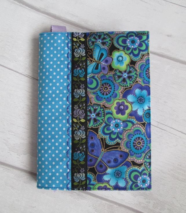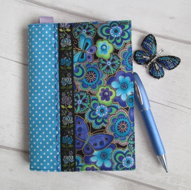 Another selection of pretty pieces from my scrap box, featuring flowers, butterflies and dragonflies has been carefully coordinated, then sewn together and finished with machine embroidery and a length of woven braid. The patchwork piece was then matched with a ditsy floral print and turned into a one of a kind notebook/diary cover complete with ribbon place marker. Comes complete with your choice of either an A6 hardbacked lined notebook or, for £1 extra, a 2021 week to view diary.