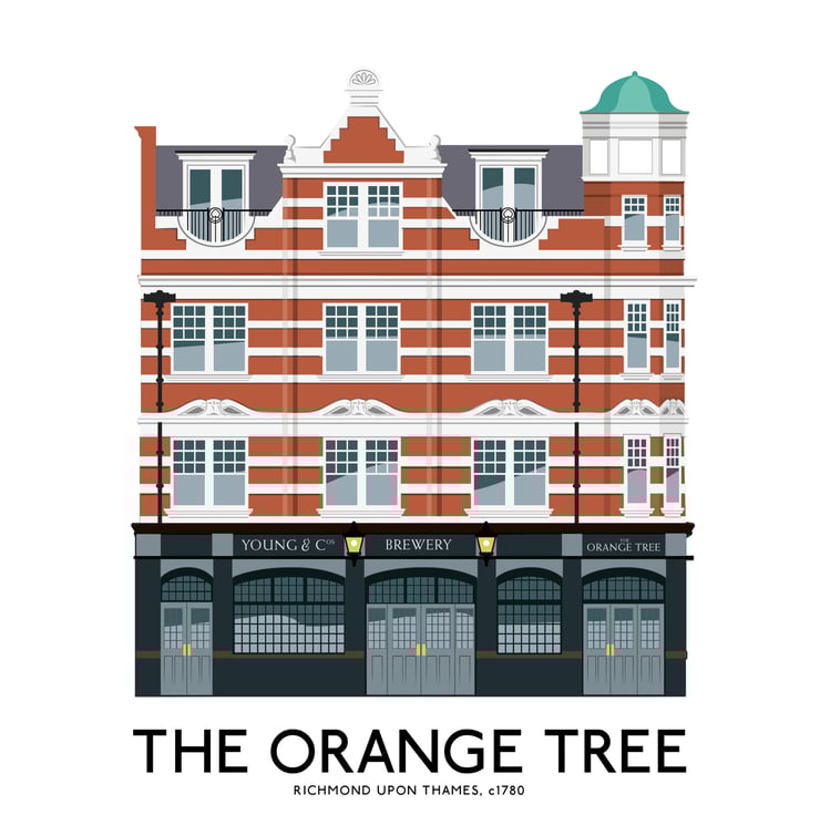 Depicts The Orange Tree Pub, Richmond Upon Thames.