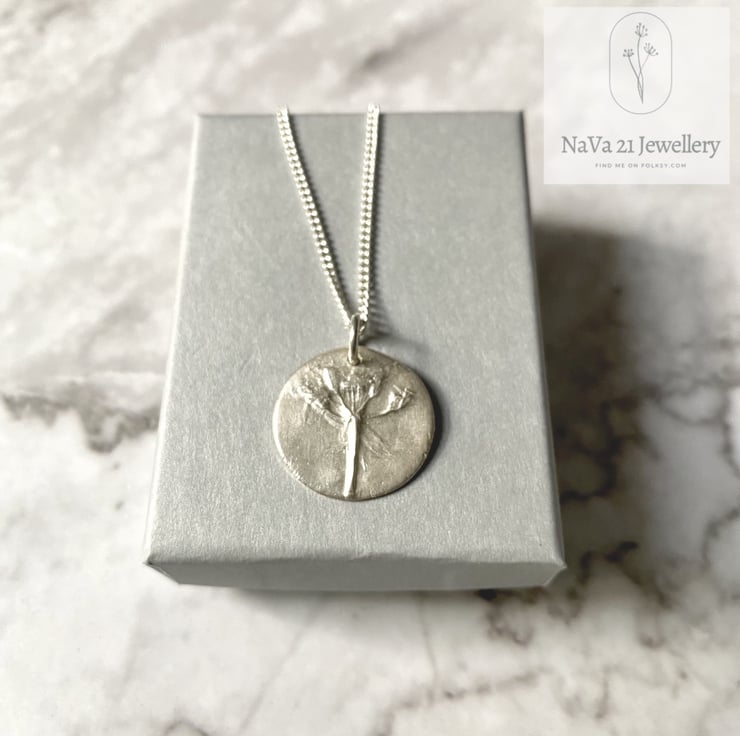 This beautiful Silver Art clay pendant has been imprinted with Cow Parsley .