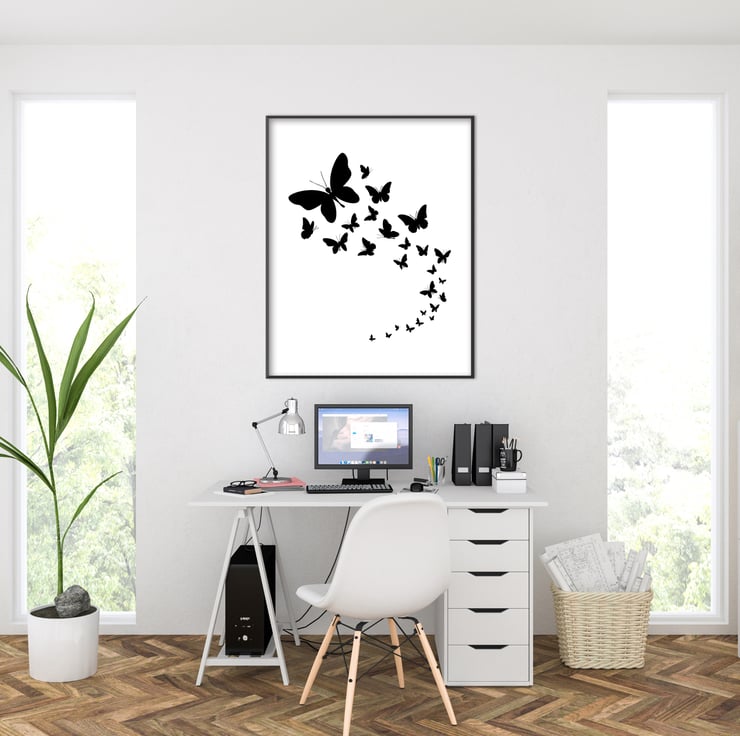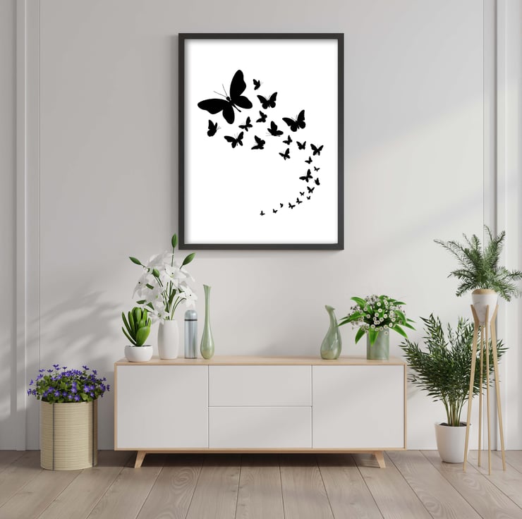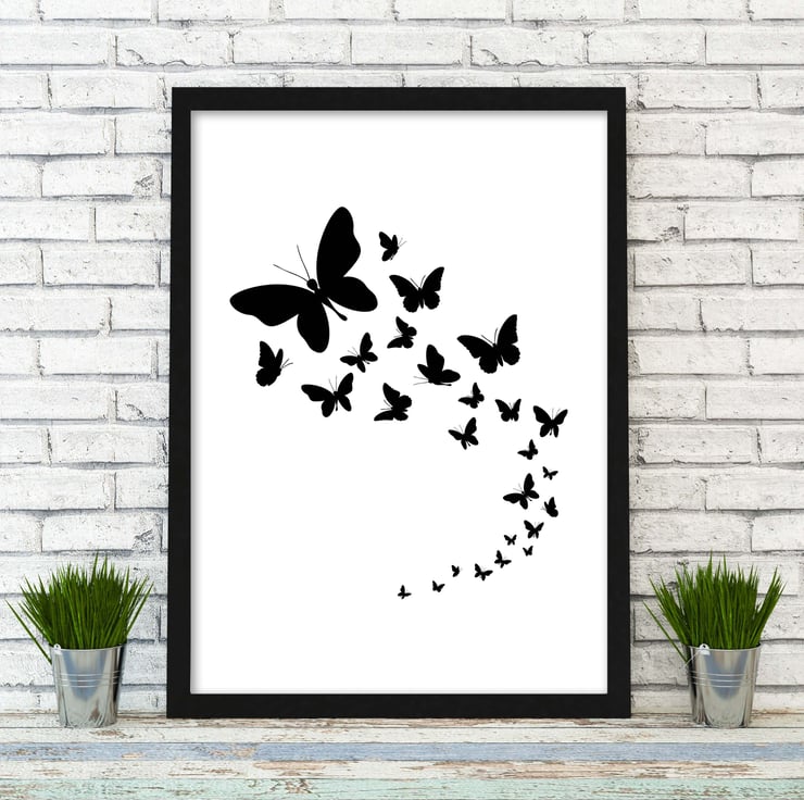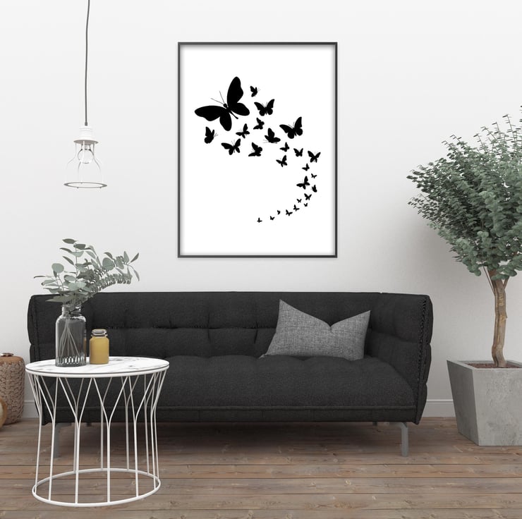 Butterfly wall print, butterfly wall decor, black and white wall art, home decor