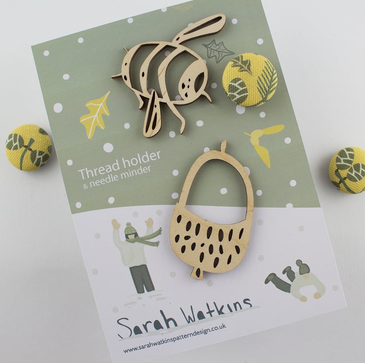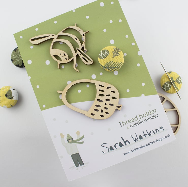 This set of 2 thread holders and a pin minder are designed from our woodland fabric range. The pretty little fabric covered magnets match all our other items and look amazing with our wooden woodland thread holders, the thread holders are an acorn and bee. The needle minders have strong magnet and keep your needle safe when crafting, no more hunting around for lost needles. The magnets are supplied on a presentation card, and are fixed in place by one shiny lucky penny on the reverse. There is also a poem on the back making the set a lovely Christmas gift for a friend or relative that loves crafting.