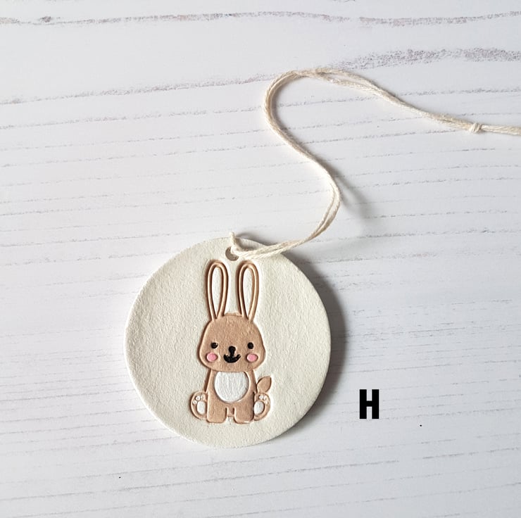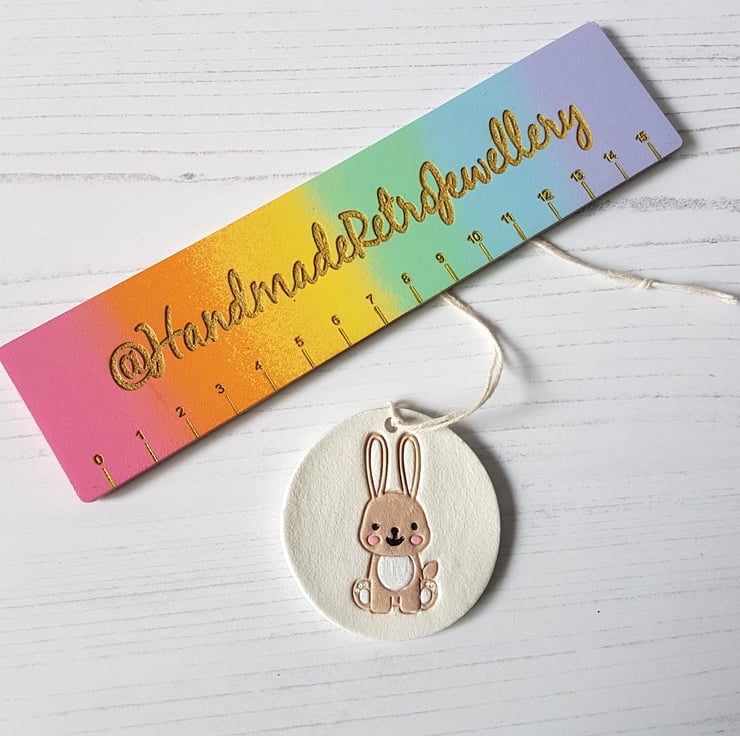 The design is hand stamped into air dry clay, then finished off using a dryer, and finally hand painted detail added using acrylic paint. The piece is then sealed with a varnish to protect, with some baker's twine added to hang in your home!