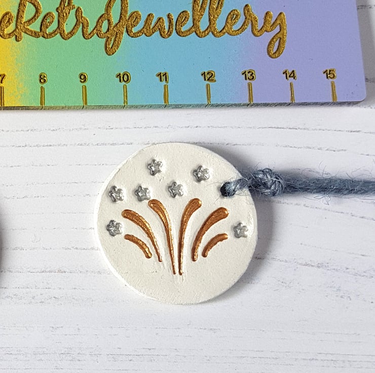 The design is hand stamped into air dry clay, then finished off using a dryer, and finally hand painted detail added using acrylic paint. The piece is then sealed with a varnish to protect, with some baker's twine added to hang in your home!