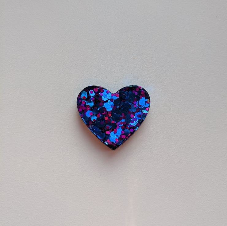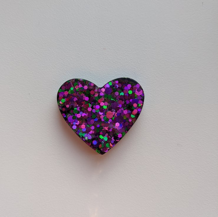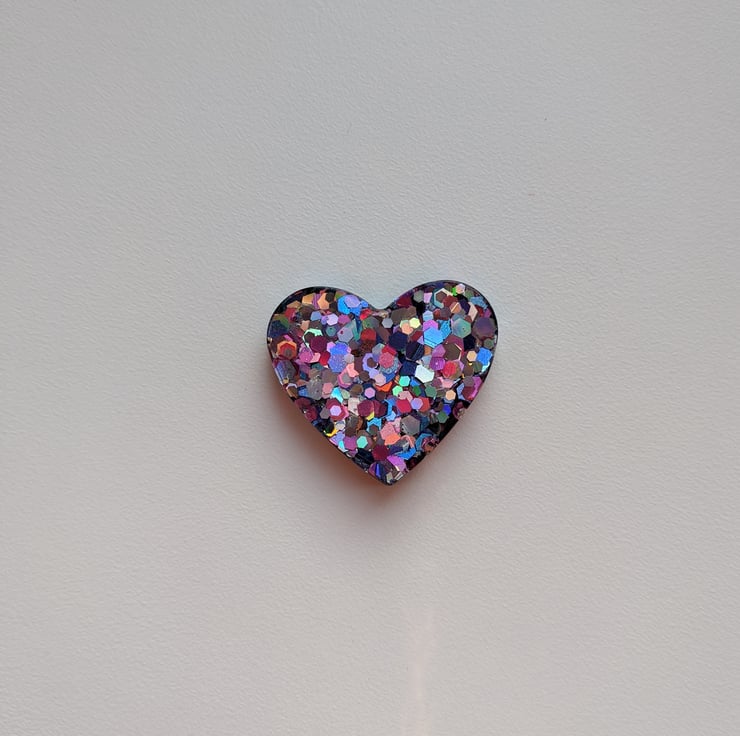 All the large Heart holographic Glitter styles are available with a brooch pin added to the back, so you can jazz up any cardigan or jacket or bag, or whatever you like!