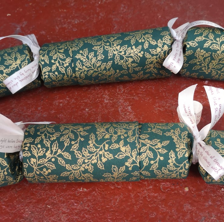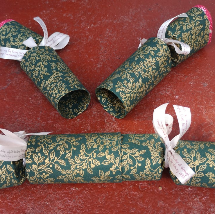 Homemade Christmas crackers, Green with Gold Holly
