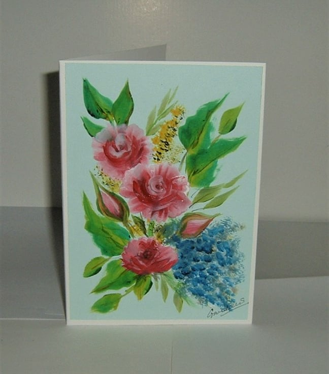 The painting has been created using quality artist's acrylic paints on blue card which has then been mounted onto quality white card stock.