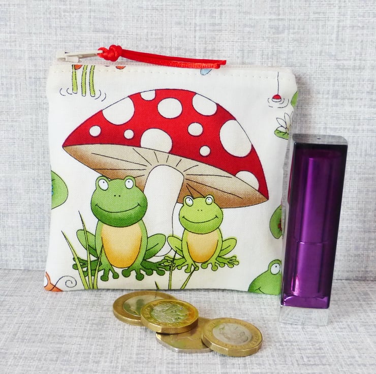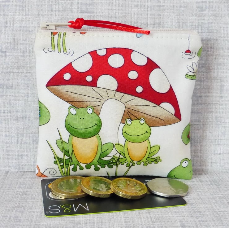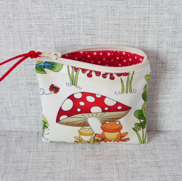 A small coin purse made from 100% cotton fabric..