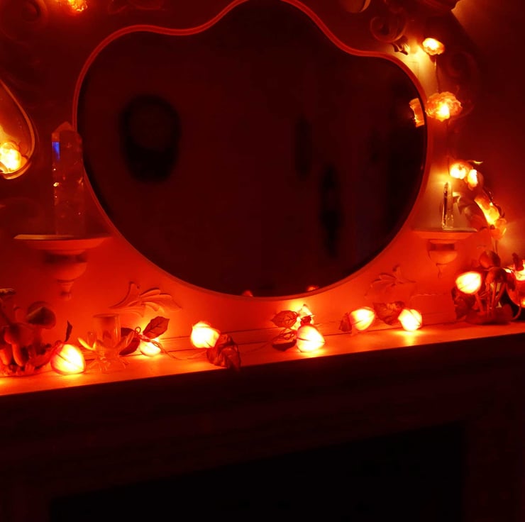 Halloween is just around the corner, so what better way to light your home than with a string of deep orange flower pods shaped like pumpkins?