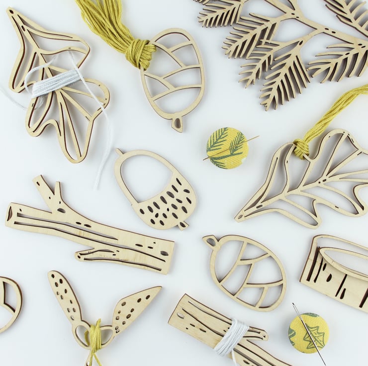 The presentation card that holds the needle minder and wooden ornaments measures: 105mm x 148mm