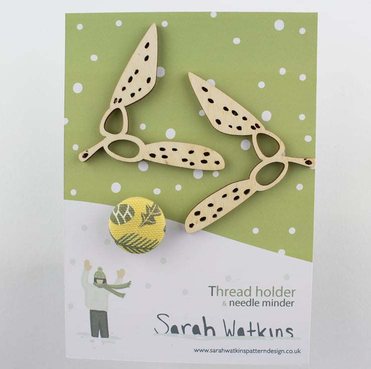 This set of 2 thread holders and a pin minder are designed from our woodland fabric range. The pretty little fabric covered magnets match all our other items and look amazing with our wooden woodland thread holders, the 2 wooden thread holders are sycamore seed heads designs. The needle minders have strong magnet and keep your needle safe when crafting, no more hunting around for lost needles. The magnets are supplied on a presentation card, and are fixed in place by one shiny lucky penny on the reverse. There is also a poem on the back making the set a lovely Christmas gift for a friend or relative that loves crafting.