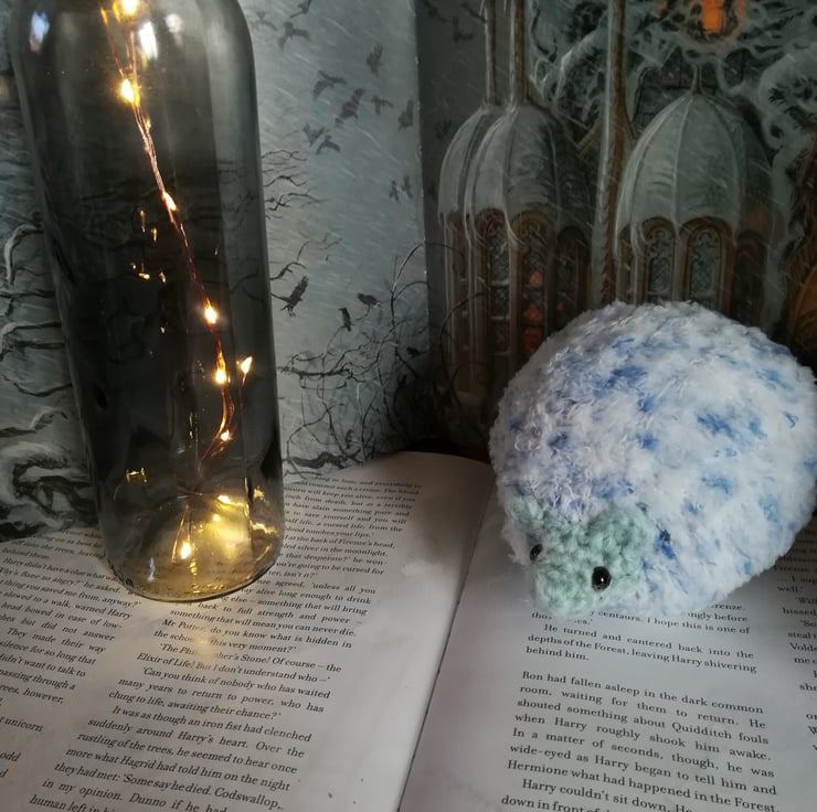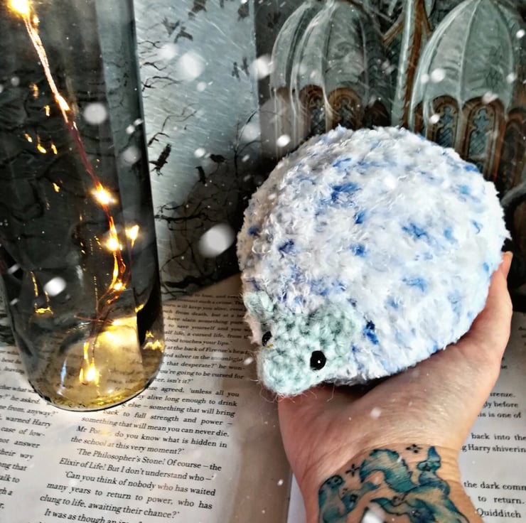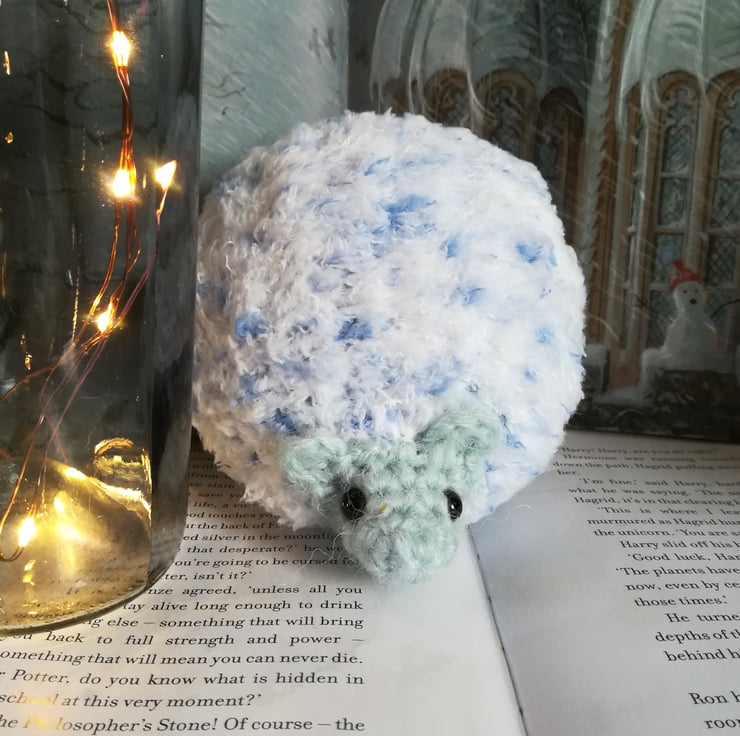 These limited edition pygmy puffs are made from the softest yarn in white and blue flecks. They have fluffy turquoise faces.