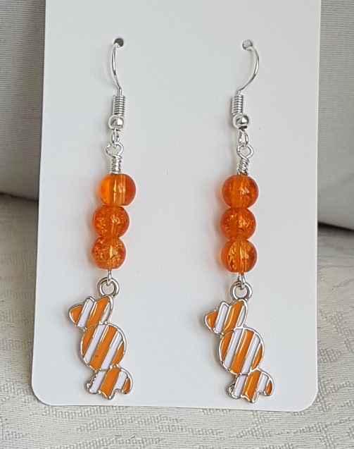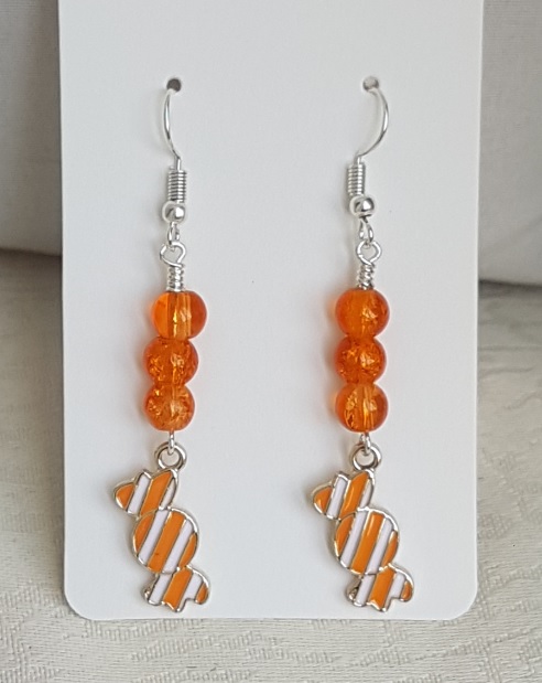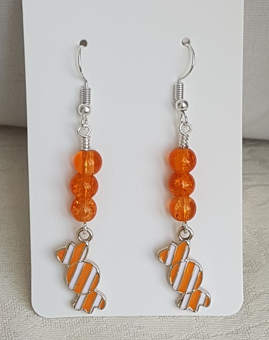 Trick or Treat Orange and White Striped Candy Earrings. Gorgeous Candy shaped charms and fabulous Orange crackle beads.A lovely treat for Halloween, or as a sweet gift.