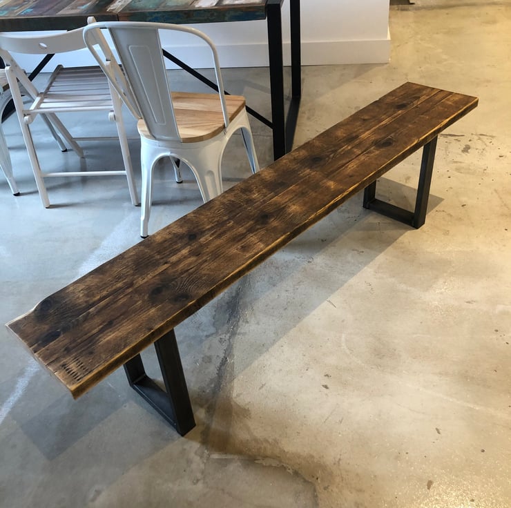Reclaimed Scaffold Board Rustic Simple Wood Bench with Steel Box Section Legs