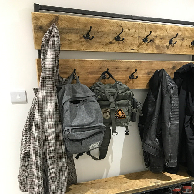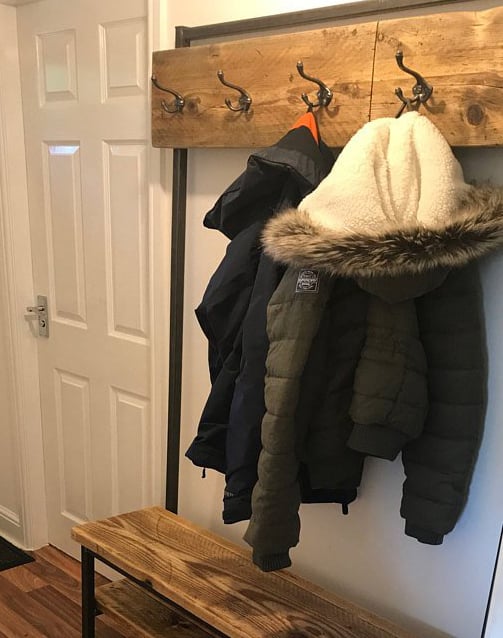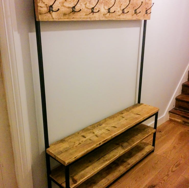Industrial style hallway stand made from reclaimed scaffold boards and 25mm box section steel.