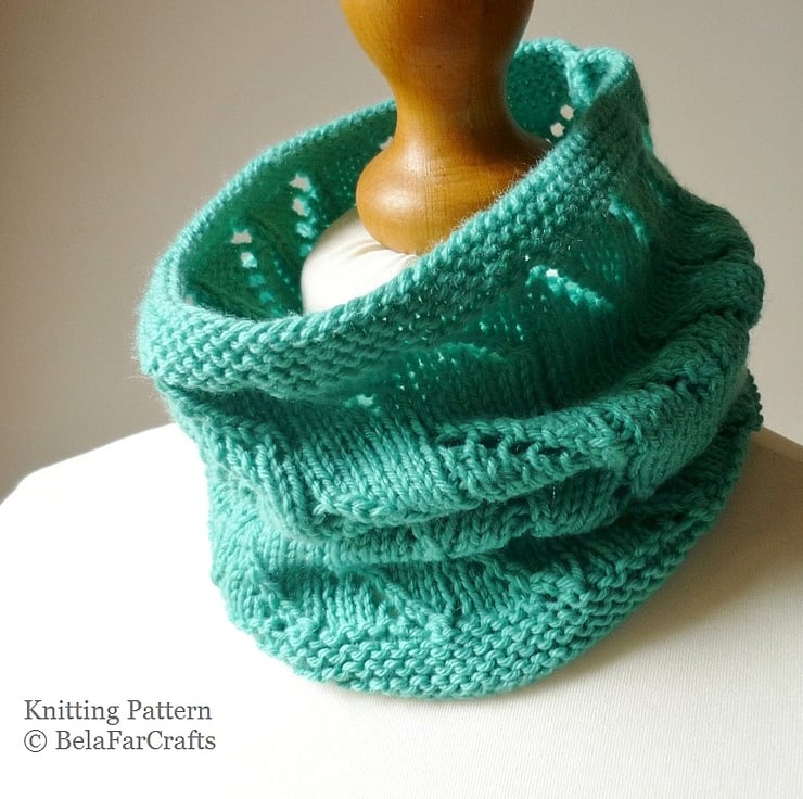 This lovely cowl is created using single-pointed needles and simples stitches. It is a great introduction to lace knitting for beginners. I am using a yarn that is ideal for children’s garments, but others would work well too.