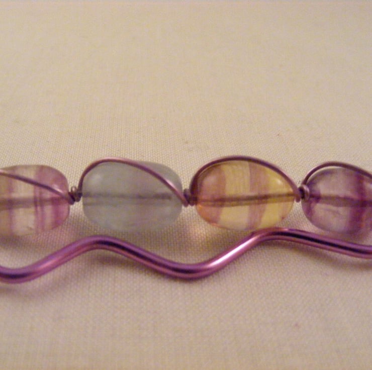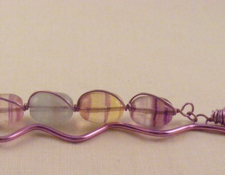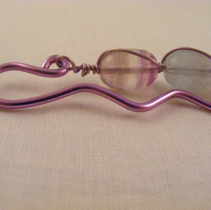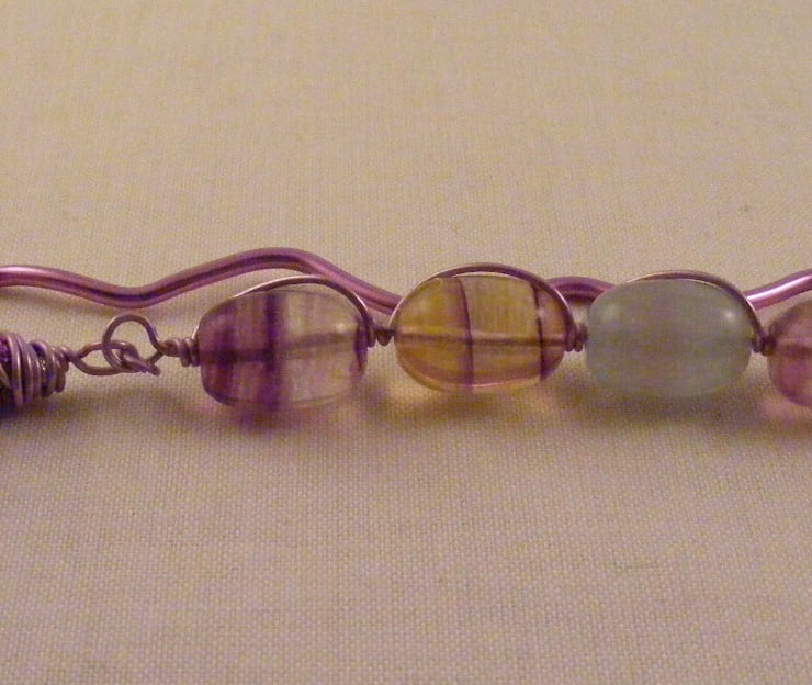 I've handmade this lovely gemstone bookmark with, 15 x 10 mm fluorite barrel beads, cotton lilac tassel, lilac copper wire and lilac aluminium wire. Perfect gift for an avid reader.