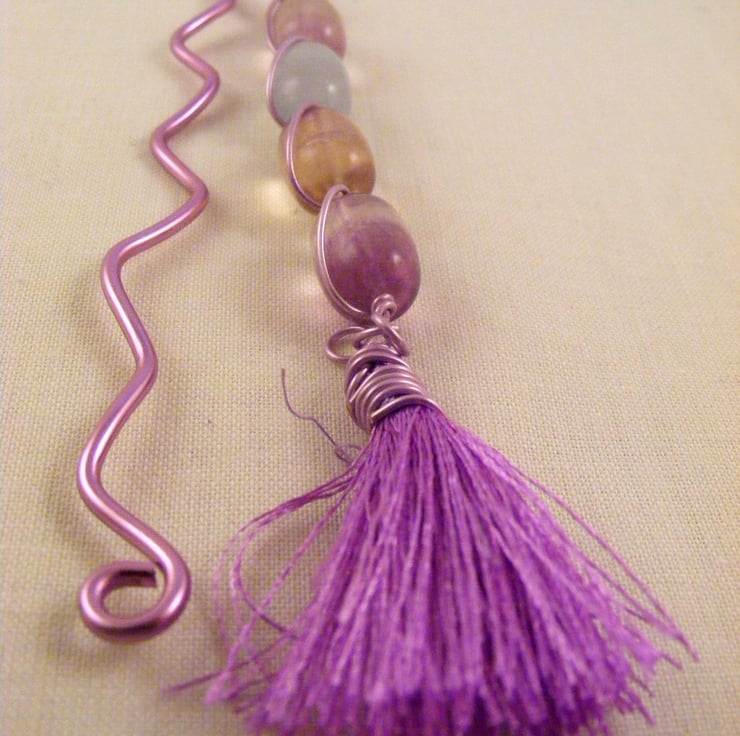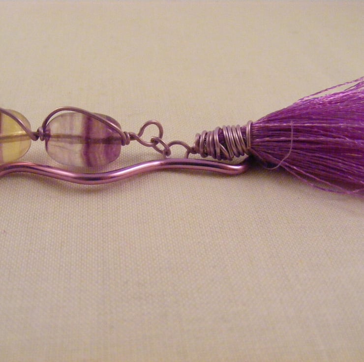 Fluorite and Lilac Tassel Bookmark.