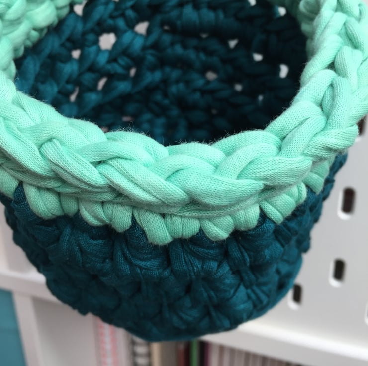 The yarns used for this basket are teal and aqua green. I can make these in any colour - message me for details!