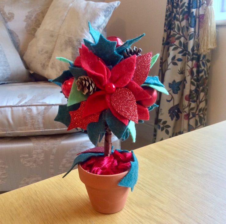 An exquisite Christmas Tree Topiary Centrepiece. Small arrangement.