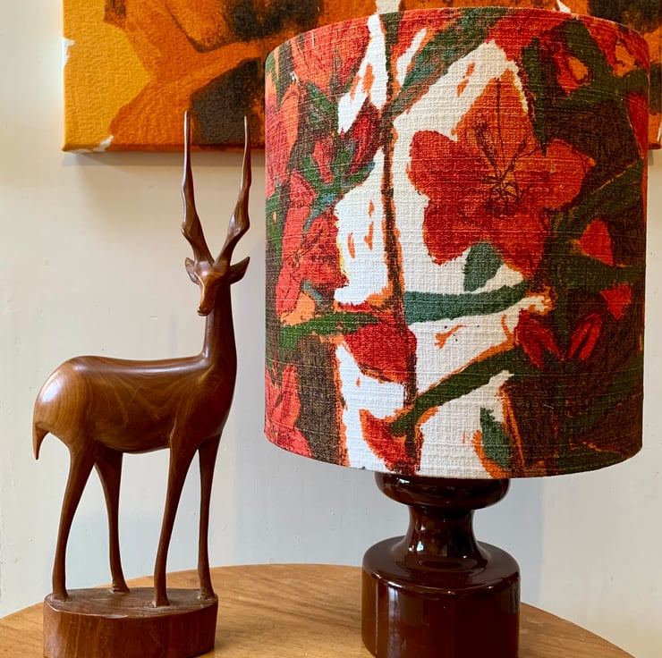 Mid Century Orange Lily 60s 50s Barkcloth Vintage Fabric Lampshade option - bold fabric for a lampshade in a modern or traditional home.