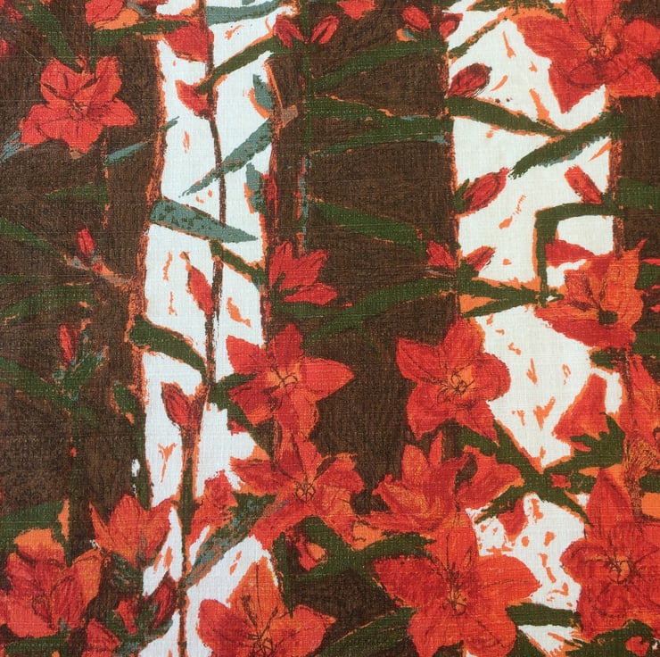 Mid Century Orange Lily 60s 50s Barkcloth Vintage Fabric Lampshade option