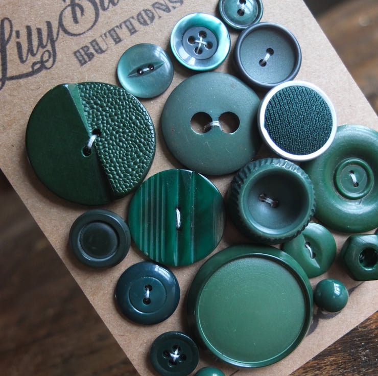 19 gorgeous vintage dark green mixed buttons, oooh there's some lovely ones in this mix!