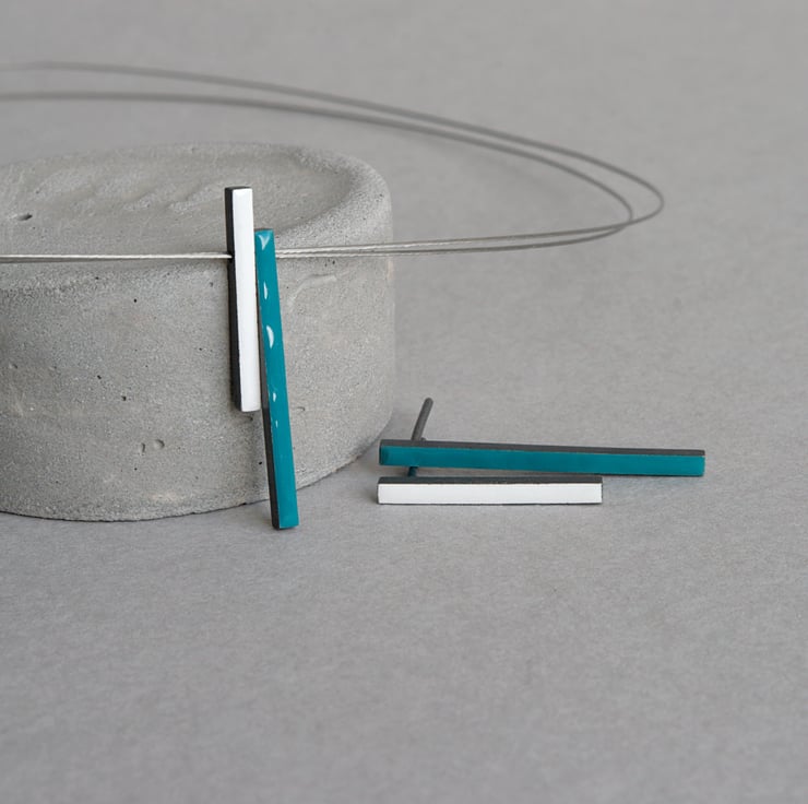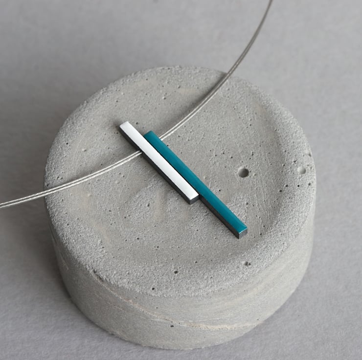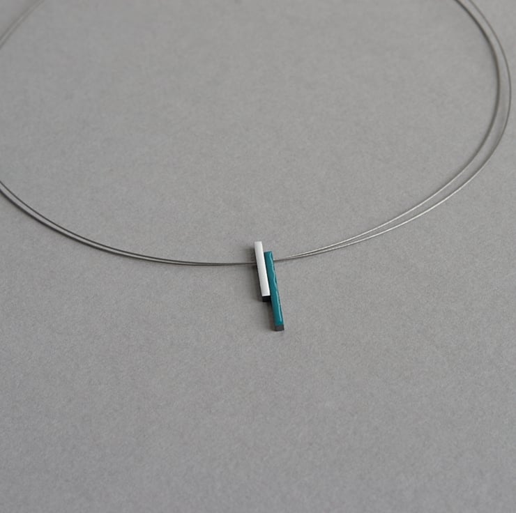 Gorgeous simple sterling silver bars necklace with white and turquoise jewellery enamel.