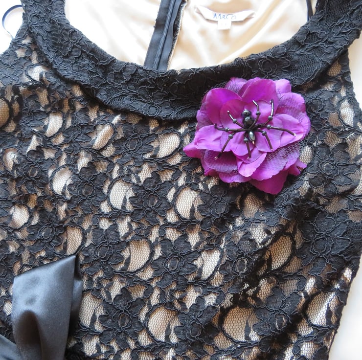 This is a beautiful unique one of a kind, amethyst purple & black flower brooch pin accessory.