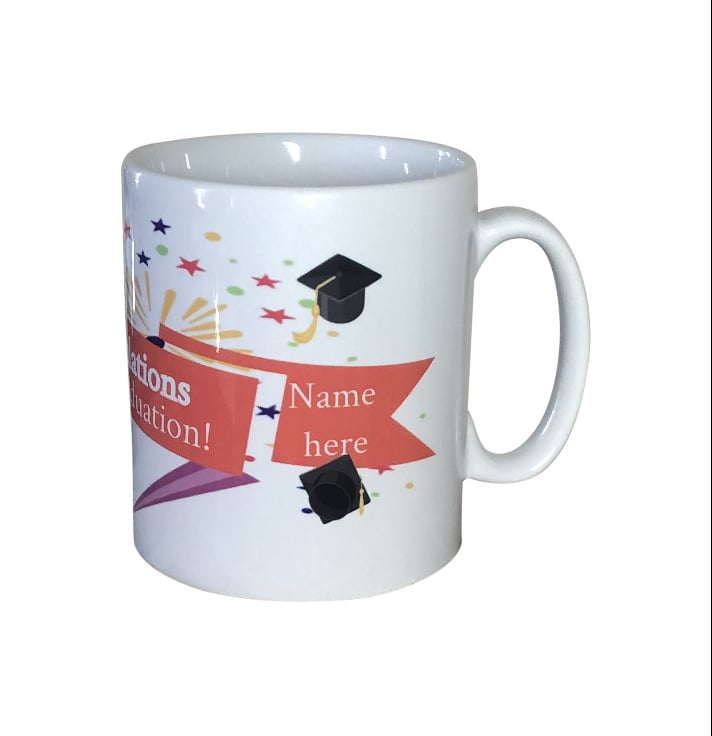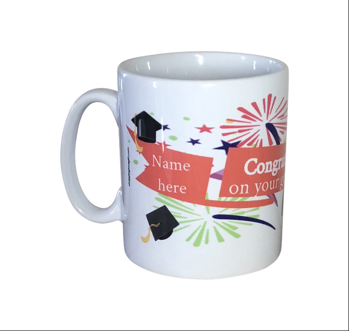 Personalised graduation mug.