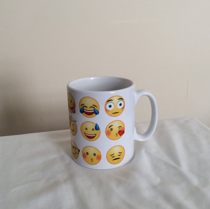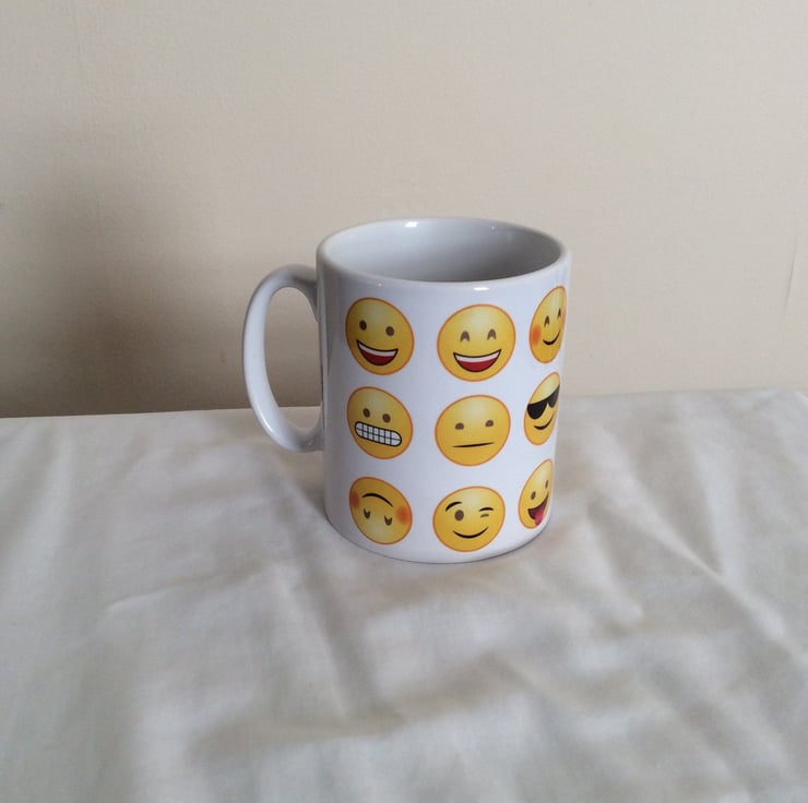 Fun Novelty Emoticon Mug with various Emoji's.