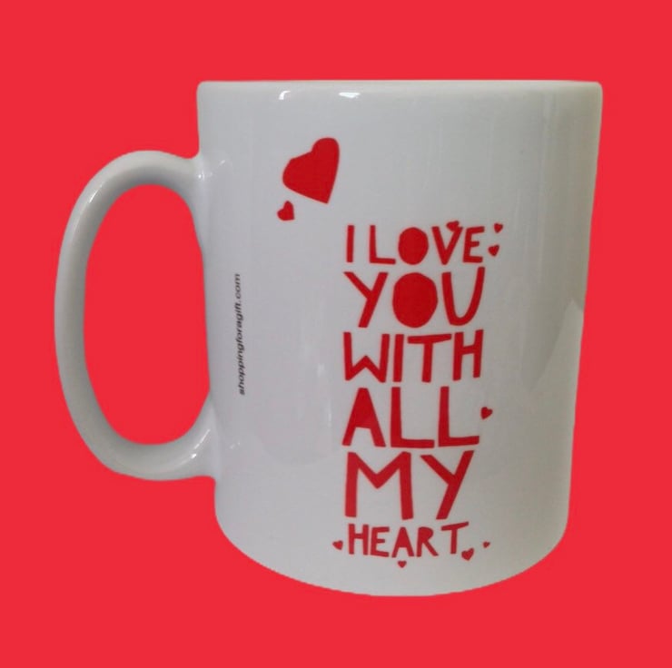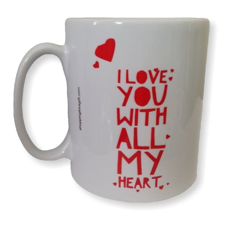 I Love you with all my heart mug. Valentines Day mugs for partners