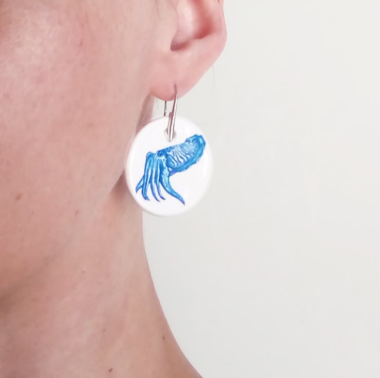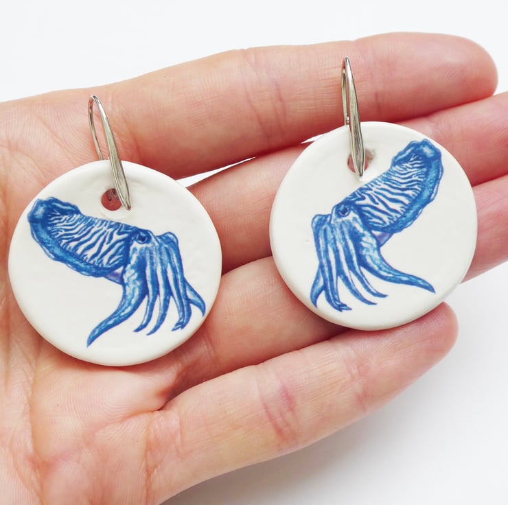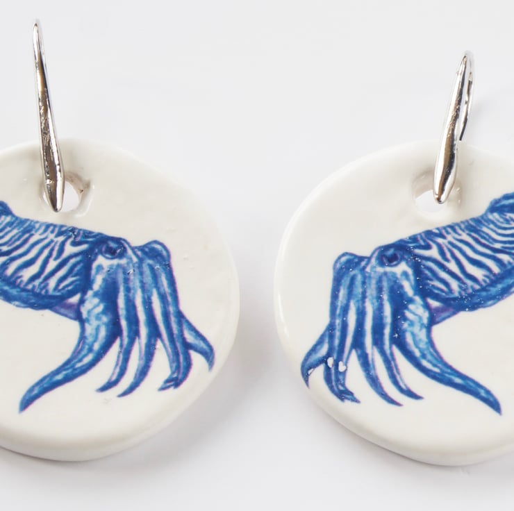 Handmade Cuttlefish Ceramic Earrings with Silver Coloured Ear Wires