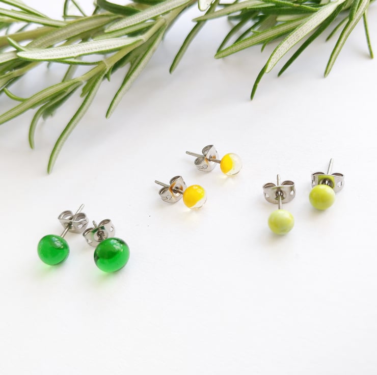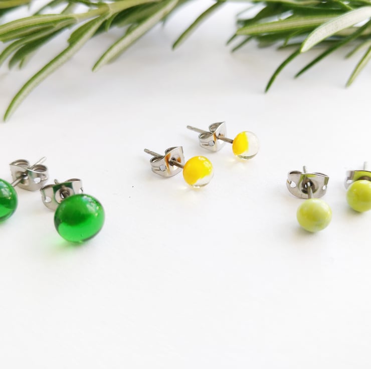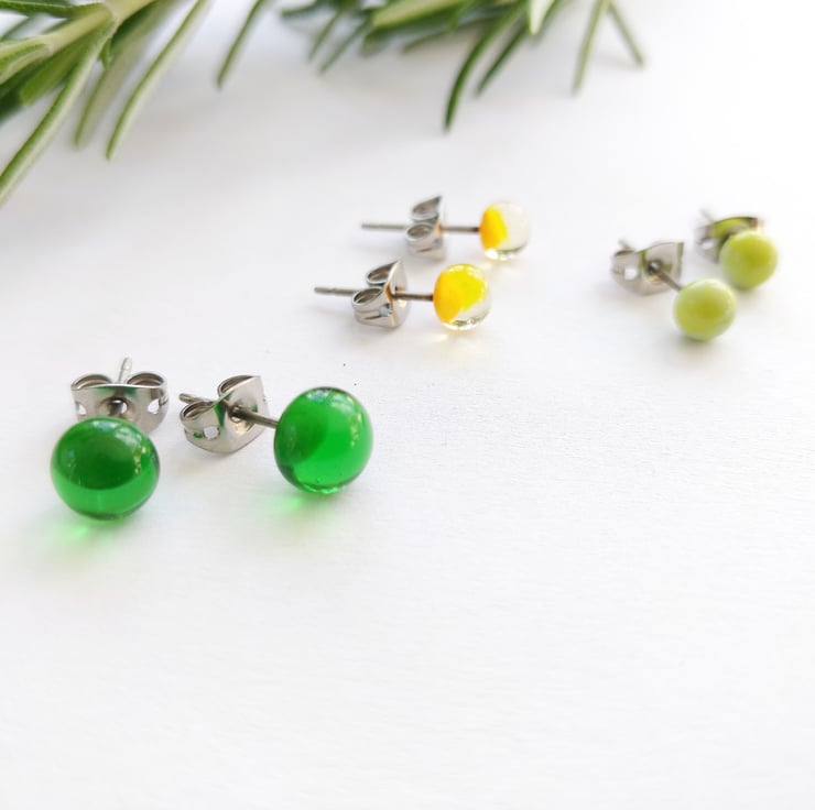 These earrings are designed to last! They have been created using a technique called lampworking which means that the post gets set into the glass. Therefore zero adhesive has been used to attach the post to the glass (which eventually would fail over time). The studs are annealed in the kiln too which adds extra strength to the glass and makes them super durable. These studs can be worn swimming, in the shower, under the heat of a hairdryer etc and they tollerate being dropped and trodden on really well! Amazing right!