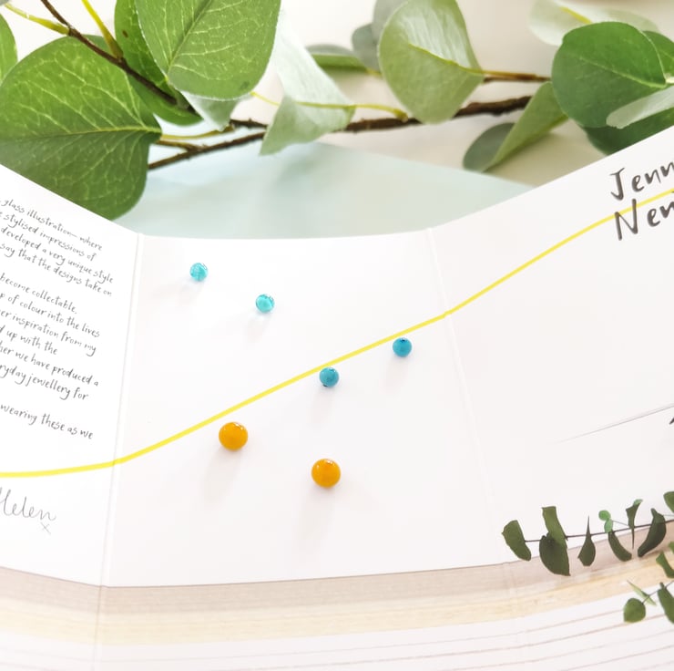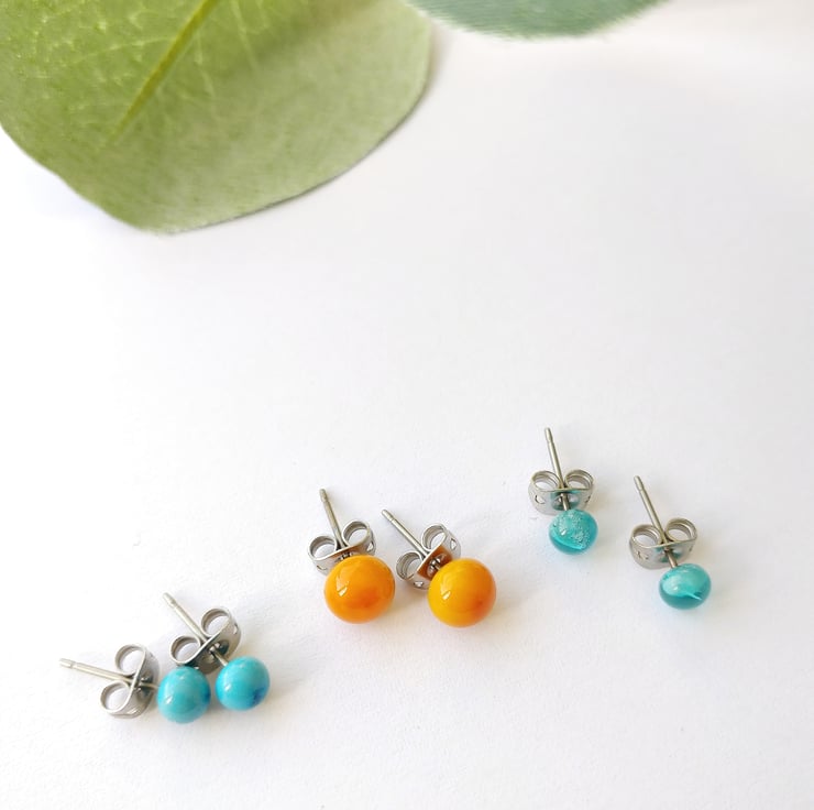 These earrings are designed to last! They have been created using a technique called lampworking which means that the post gets set into the glass. Therefore zero adhesive has been used to attach the post to the glass (which eventually would fail over time). The studs are annealed in the kiln too which adds extra strength to the glass and makes them super durable. These studs can be worn swimming, in the shower, under the heat of a hairdryer etc and they tollerate being dropped and trodden on really well! Amazing right!