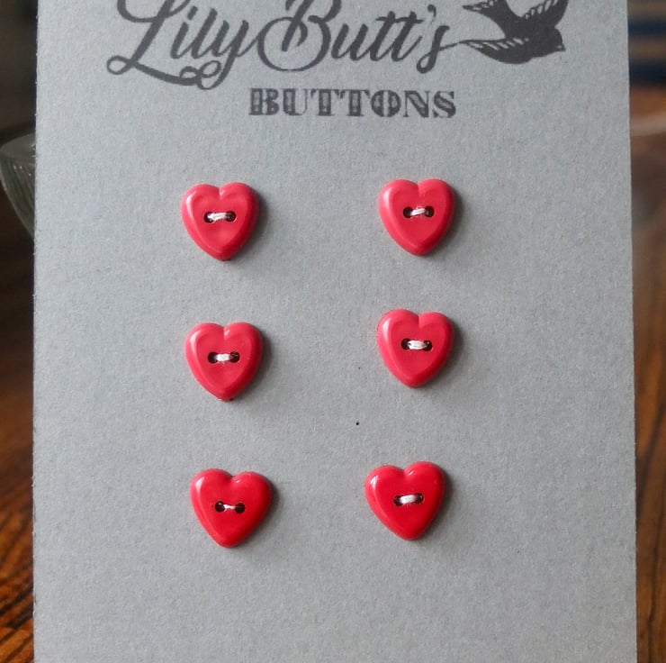 6 vintage heart shaped red buttons 12mm, these are sooo pretty.
