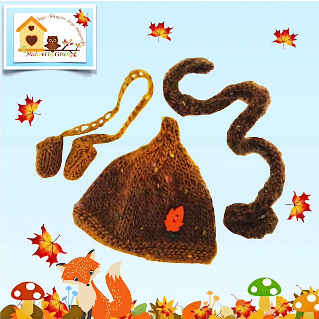 A cute little handknitted hat, scarf and mittens set to fit the Mulberry Green dolls. The set is knitted from lovely soft shaded wool and is just the thing for the Mulberry Green characters now Autumn is coming and there is a nip in the air. The mittens are on a crocheted chain so that Maisy and her friends don’t lose their new mittens.