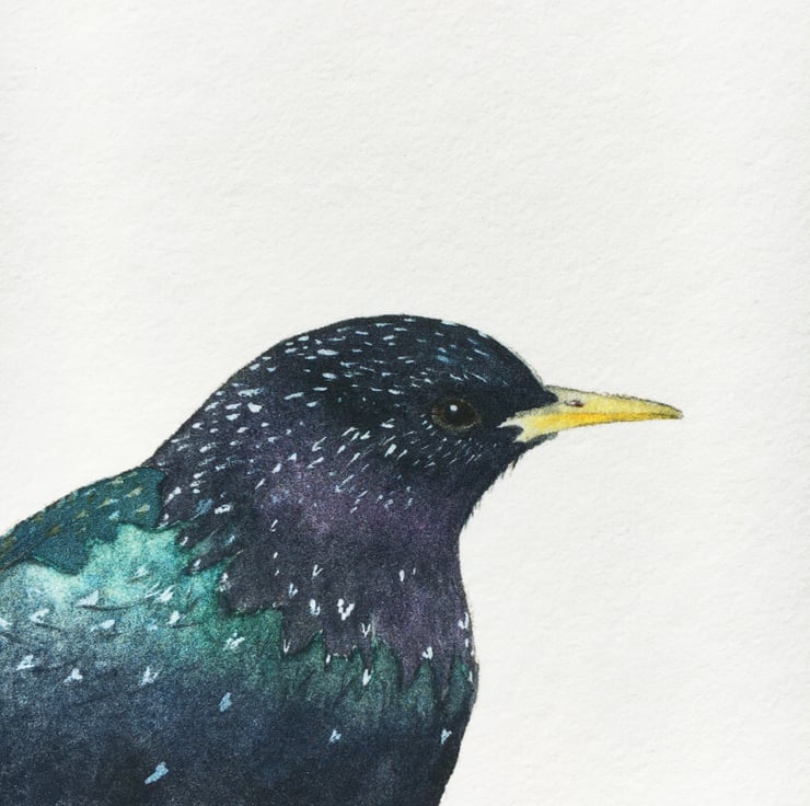 I used my favourite Daniel Smith watercolours to try to capture all the amazing colours in the starling's feathers.