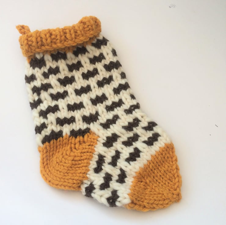 Mustard heels. toes and cuff with white and brown foot