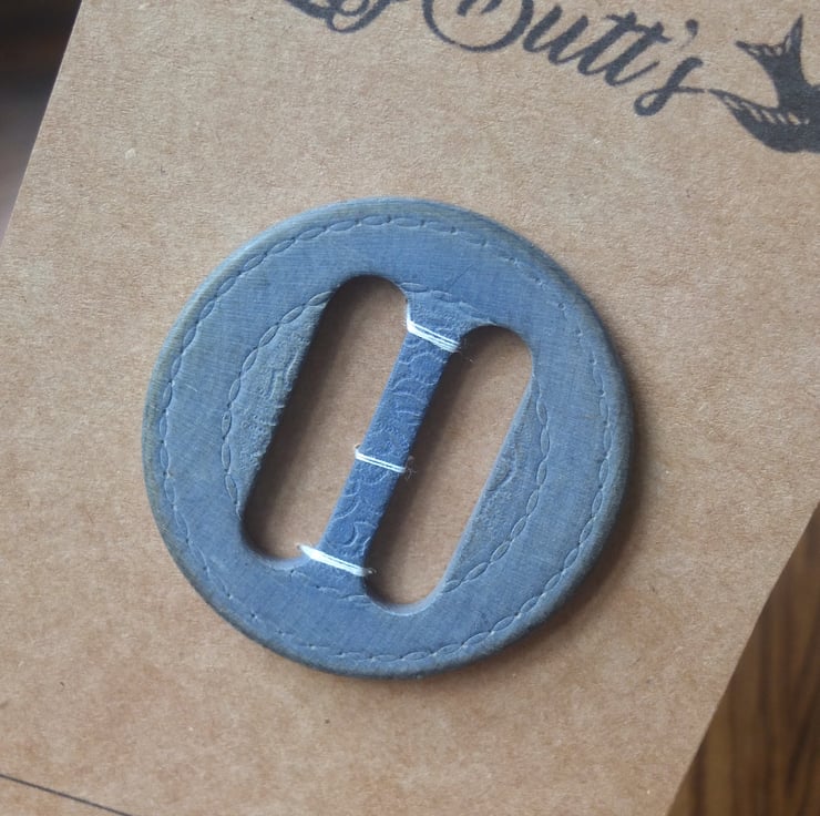 Gorgeous vintage grey wooden buckle, has a chain pattern debossed on the front. 60mm diameter and 4mm
