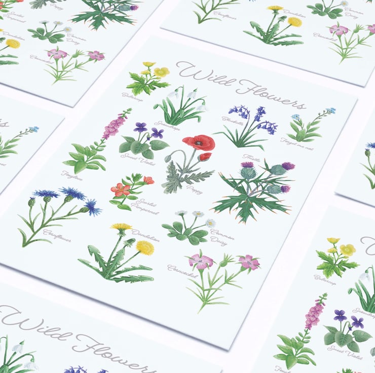 This wild flower print is available in A4 and A3 by clicking the choose option button.